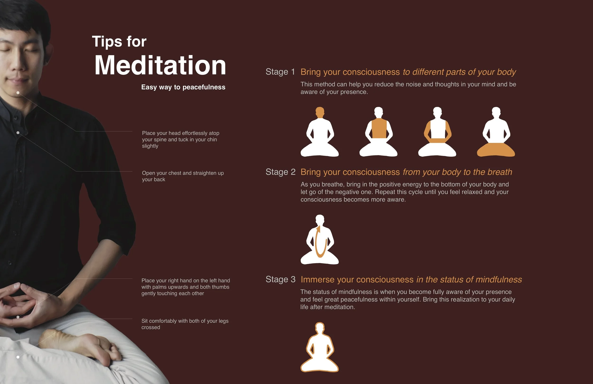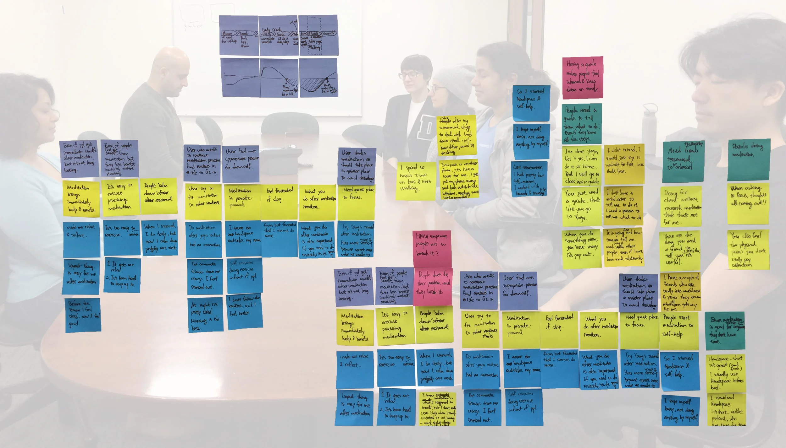 Most meditation events take place in more private context or communities, in order to observe people's meditation journey, I taught a group of student and faculty how to meditate and introduced headspace to them. I also created a poster to explain the idea of mindfulness to facilitate the teaching. This group helped me understand the learning journey and barriers of meditation.